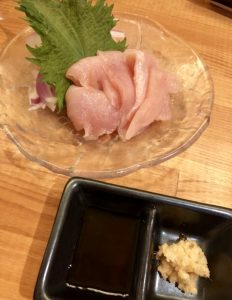 お刺身も新鮮な朝びきの鶏肉ですので、弾力もあり美味しいです。