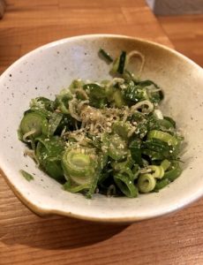 キャベツは定番ですが、五条葱をごま油で和えたものがかなり美味しく